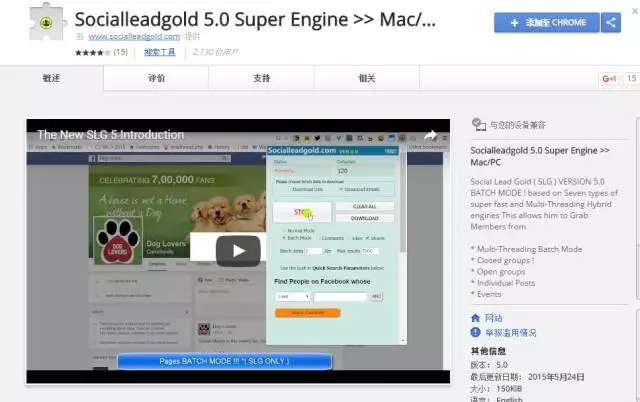 在谷歌浏览器的扩展程序里面搜索“Socialleadgold”,如下图,